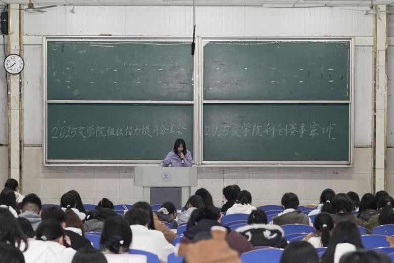 随后,学生会创新创业部部长张欣茹以“赛事赋能,创意筑梦”为主题开展专题分享。她系统梳理了“挑战杯”、大学生创新创业训练计划等重点赛事,通过展示学院往届学子在比赛中斩获佳绩的案例,详细解析选题思路、备赛技巧与团队协作要点。分享中,她特别强调:“文学院学子的人文素养与创意能力是参与科创的独特优势,希望大家以兴趣为帆,用专业为桨,勇敢迈出实践第一步”。