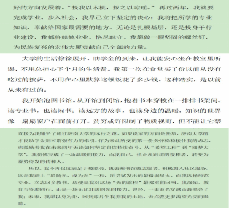 此次“我与资助的故事”主题征文活动不仅为同学们提供了一个表达感恩、分享成长的平台,更深化了师生对国家资助政策的理解与认识。未来,文学院将继续扎实推进学生资助工作,不断创新资助育人形式,充分发挥资助政策的育人功能,激励更多学子在教育强国的新征程中奋勇前行,书写属于自己的精彩人生篇章