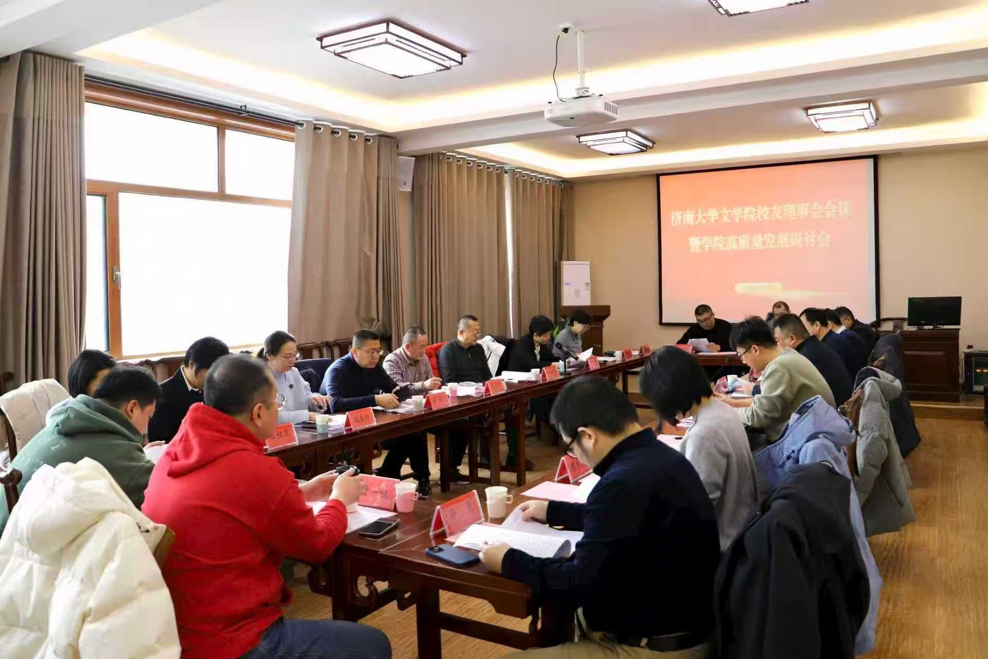 1月17日下午,济南大学文学院在舜耕书院召开校友理事会会议暨学院高质量发展研讨会。文学院党委书记朱海龙、副院长鲁毅、各系主任,以及来自传媒、教育等领域的十余位校友理事欢聚一堂,共同研讨新形势下学院高质量发展路径。