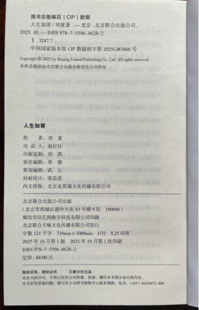 近日,我院刘夏(刘丽霞)教授的短篇小说集《人生如寄》由北京联合出版公司出版(2025年10月第1版)。这是刘教授继短篇小说集《鸡鸣村》(2022)和散文集《花子》(2024)之后的第三本文学作品集,也是她在教学科研之余新的创作成果。