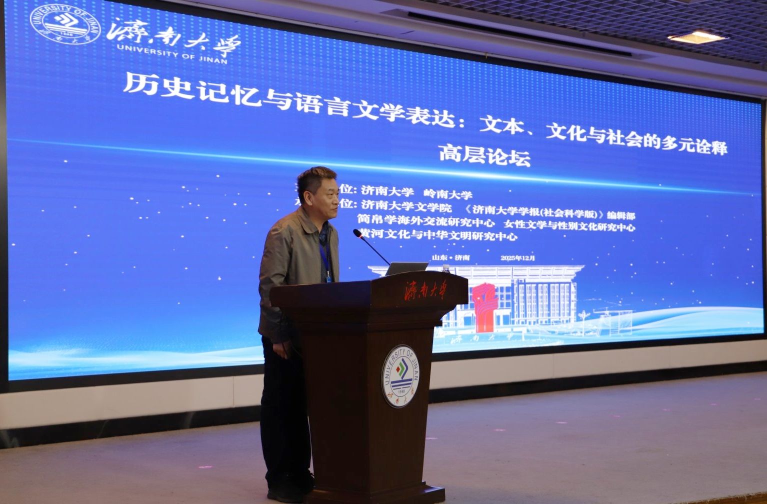 2025年12月13日,由济南大学、岭南大学主办,济南大学文学院、《济南大学学报(社会科学版)》编辑部、简帛学海外交流研究中心、女性文学与性别文化研究中心、黄河文化与中华文明研究中心联合承办的“历史记忆与语言文学表达:文本、文化与社会的多元诠释”高层论坛在济南大学隆重举行。来自中国社会科学院、中国艺术研究院、中国人民大学、复旦大学、上海交通大学、南京大学、东南大学、苏州大学、深圳大学、四川大学、宁夏大学、山东大学、中国海洋大学、杭州师范大学、山西师范大学、河北师范大学、岭南大学等全国30余所高校与科研机构的70余位专家学者齐聚泉城,围绕历史记忆的多元呈现、语言文学的文化功能、出土文献与古代文学、女性文学与性别文化、文化记忆与社会变迁、语言文化与中华文明等议题,与会学者展开了深入的对话。