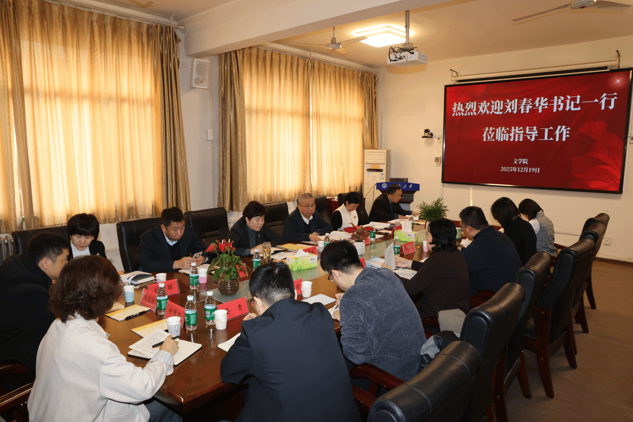刘春华充分肯定了文学院近年来在科学研究、人才培养等方面取得的成效,并对学院高质量发展提出四点要求:一是要全面加强党的建设,深入学习贯彻党的二十届四中全会精神,规范议事决策机制,打造党建特色品牌,推动党建与业务融合,营造风清气正的育人环境。二是要打造过硬领导班子,班子成员带头团结协作、务实担当、廉洁高效,持续提升凝聚力与战斗力,形成推动发展的坚强核心。三是要深入推进学院事业高质量发展,落实“十五五”规划与教育科技人才工作会议精神,加强高水平师资队伍建设,提高人才培养质量,强化学科内涵建设,加快推进博士点建设。四是要严守安全稳定底线,深入学生、深入班级、深入宿舍,严格落实学校安全部署,加强特殊群体学生关心关爱工作,维护学生身心健康和校园安全稳定。五是要着力推进“十五五”规划编制。积极推进各项任务落实,高质量起草编制学院“十五五”发展规划。