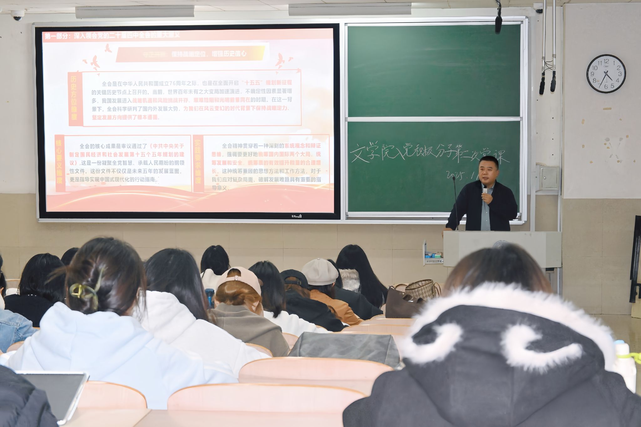为深入学习贯彻习近平新时代中国特色社会主义思想和党的二十届四中全会精神,扎实筑牢入党积极分子思想根基,严把党员发展“入口关”,文学院党委近期开展了2025年下半年入党积极分子培训。全院共102名入党积极分子全程参与培训。