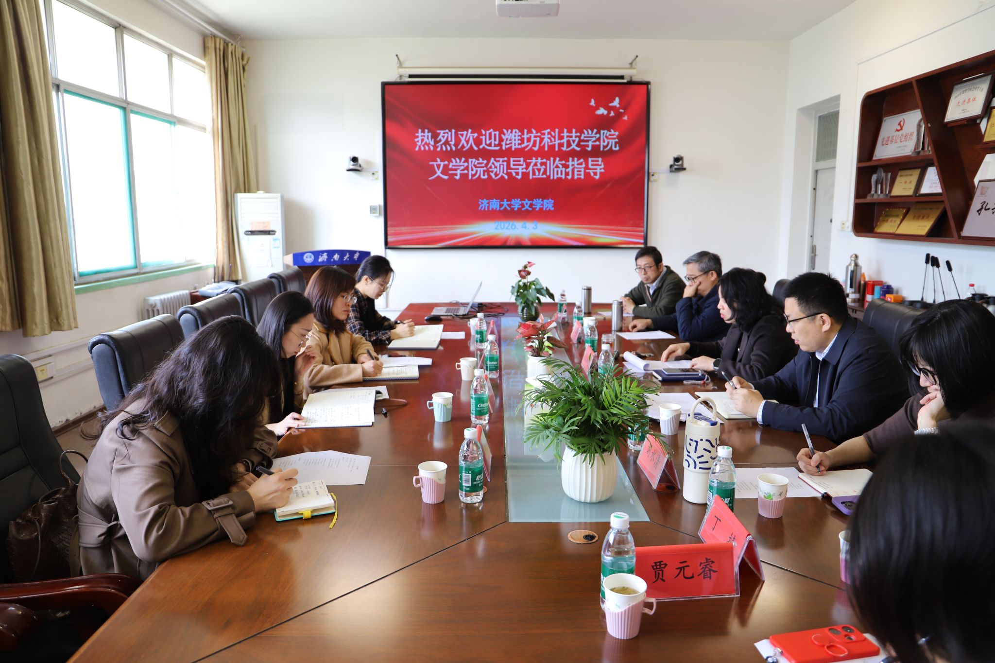 孙淑娟院长对我院的热情接待表示衷心感谢,并介绍了潍坊科技学院文学院的建院历史、办学思路及特色发展情况。孙院长表示,学院依托农圣文化资源,打造了鲜明的地方办学特色,培育出“黄大年式教师团队”等一系列教学成果;学院将立足地方、扎根菜乡,持续推进教师队伍建设、人才培养模式创新与地方特色资源融合。