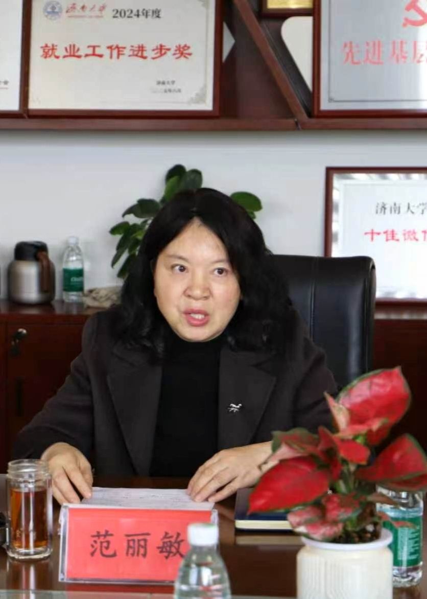 会议伊始,范丽敏院长对潍坊科技学院文学院一行的到访表示热烈欢迎,期待通过此次交流实现双方优势互补。随后,范院长介绍了济南大学文学院的办学历史、专业结构、师资队伍、本科招生等情况。她表示,学院近年来在科研创新、学生培养、社会服务等方面不断取得进步,积极推动汉语言文学、传播学、历史学专业适应时代发展的需求。