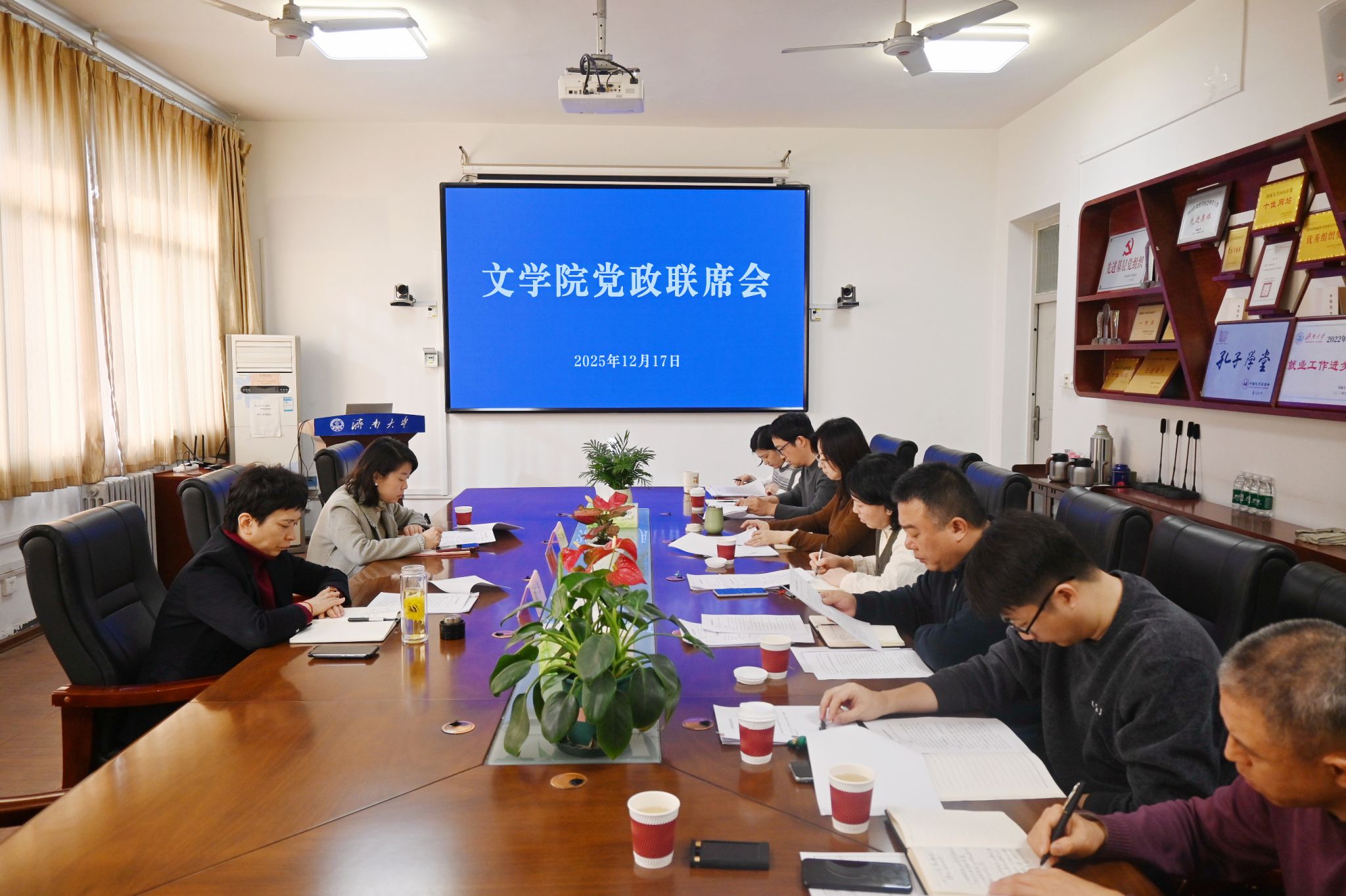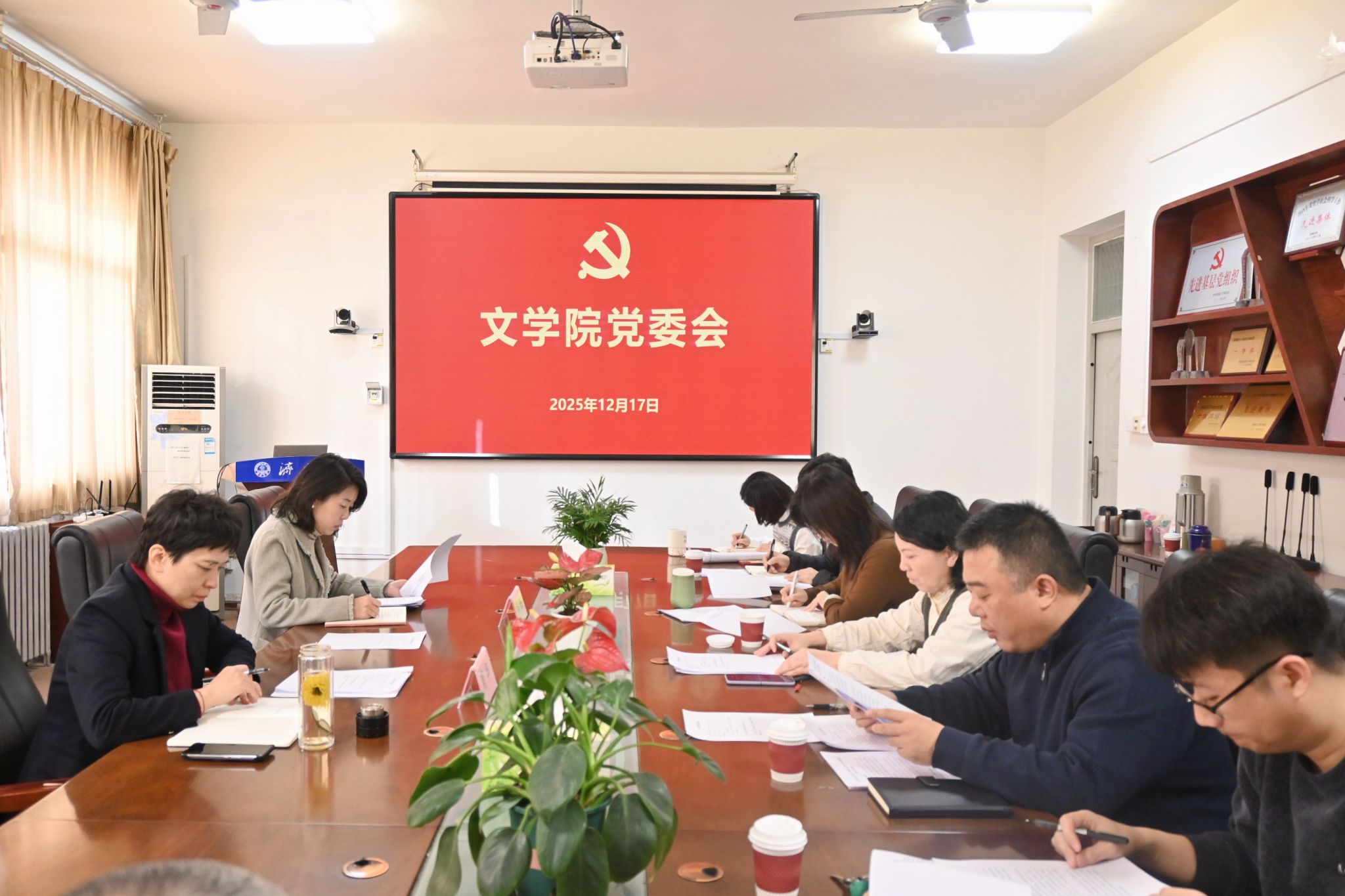 12月17日上午,文学院在3教411会议室召开党委会及党政联席会,学校党委副书记商华、党委宣传部副部长马杰列席并指导会议。学院党委、行政领导班子成员参加会议。会议由学院党委书记朱海龙主持。
