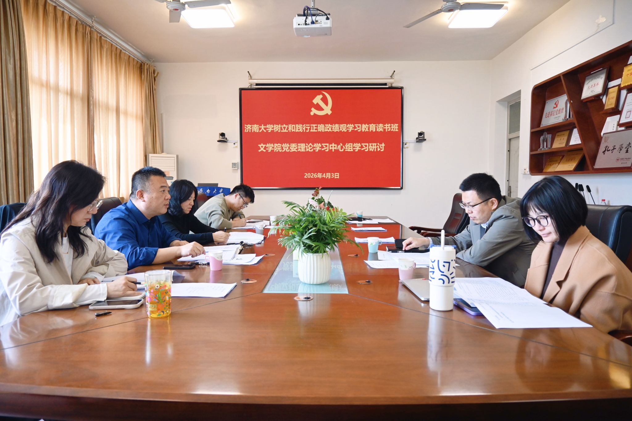 为深化树立和践行正确政绩观学习教育,落实立党为公、为民造福、科学决策、真抓实干的总要求,4月3日下午,文学院党委理论学习中心组在3教411会议室召开树立和践行正确政绩观学习教育读书班集中研讨会,深入学习领会习近平总书记关于树立和践行正确政绩观的重要论述以及在地方工作期间坚持正确政绩观的生动实践。学院党委理论学习中心组全体成员参加会议,会议由学院党委书记朱海龙主持。